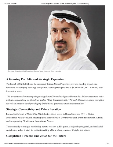 10/31/25, 9:37 AM Union Properties Launches $545m ‘Mirdad’ Project in Dubai’s Motor City