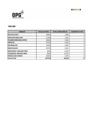 WEBSITE VALUE (IN AED) TOTAL MEDIA REACH NUMBER OF HITS