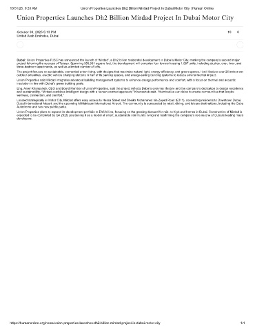 10/31/25, 9:33 AM Union Properties Launches Dh2 Billion Mirdad Project In Dubai Motor City | Human Online
