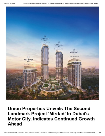 10/31/25, 9:34 AM Union Properties Unveils The Second Landmark Project 'Mirdad' In Dubai's Motor City, Indicates Continued Growth Ahead