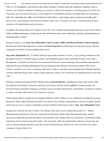 10/31/25, 9:34 AM Union Properties unveils the second landmark project ‘Mirdad’ in Dubai’s Motor City, indicates continued growth ahead | Web-Rele…