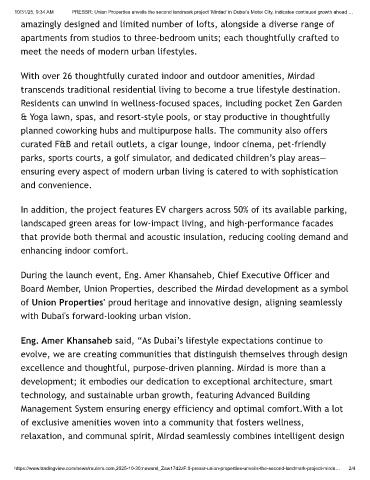 10/31/25, 9:34 AM PRESSR: Union Properties unveils the second landmark project ‘Mirdad’ in Dubai’s Motor City, indicates continued growth ahead …