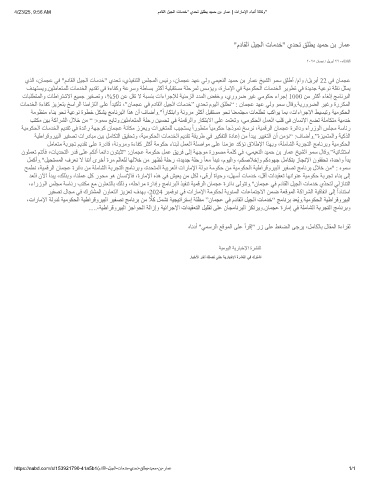 4/23/25, 9:56 AM مدﺎﻘﻟا لﯾﺟﻟا تﺎﻣدﺧ" يدﺣﺗ ﻖﻠطﯾ دﯾﻣﺣ نﺑ رﺎﻣﻋ | تارﺎﻣﻹا ءﺎﺑﻧأ ﺔﻟﺎﻛو"