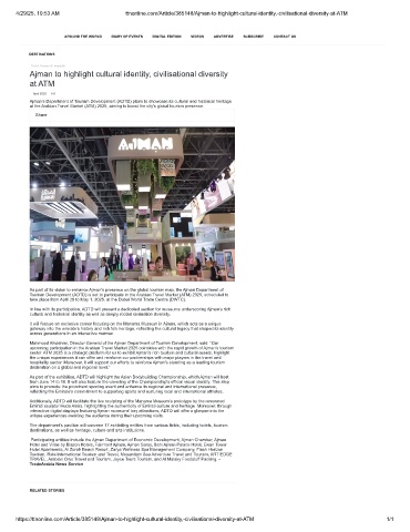 4/29/25, 10:53 AM ttnonline.com/Article/385148/Ajman-to-highlight-cultural-identity,-civilisational-diversity-at-ATM