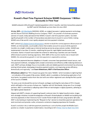 services in Kuwait, today announced that WAMD, Kuwait’s real-time payment system, recorded