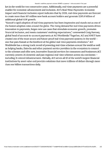 one that puts Kuwait at the fore      front of the global real-time pay  ments revolu   tion.” ACI