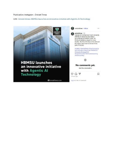 Publication: Instagram – Emirati Times Link: Emirati times: HBMSU launches an innovative initiative with Agentic AI Technology