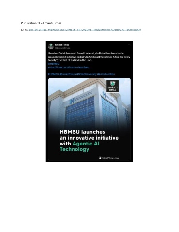 Publication: X – Emirati Times Link: Emirati times: HBMSU launches an innovative initiative with Agentic AI Technology