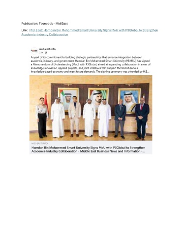 Publication: Facebook – Mid East Link: Mid-East: Hamdan Bin Mohammed Smart University Signs MoU with P3Global to Strengthen Academia-Industry Collaboration