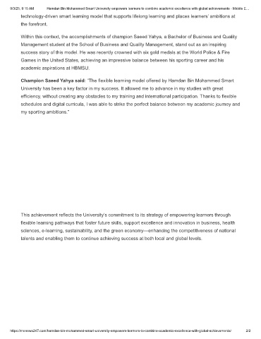 9/3/25, 9:15 AM Hamdan Bin Mohammed Smart University empowers learners to combine academic excellence with global achievements - Middle E…