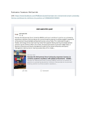 Publication: Facebook- Mid East Info Link: https://www.facebook.com/MidEast.i/posts/hamdan-bin-mohammed-smart-university- hbmsu-continues-to-reinforce-its-position-a/1350628353730591/