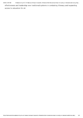 9/8/25, 9:45 AM A Statement by H.E. Dr. Mansoor Al Awar Chancellor of Hamdan Bin Mohammed Smart University on International Literacy Day…