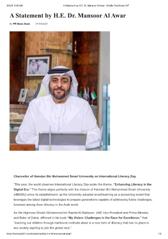 9/8/25, 9:46 AM A Statement by H.E. Dr. Mansoor Al Awar - Middle East News 247