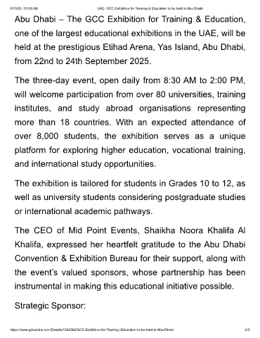 9/15/25, 10:59 AM UAE: GCC Exhibition for Training & Education to be held in Abu Dhabi