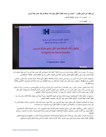 ىلإ فدهت ةوطخ يف ،"سيردت ةئيه وضع لكل يعانطصا ءاكذ ليكو" ةيكذلا دمحم نب نادمح ةعماج تقلطأ / ماو /ربمتبس 11 يف يبد