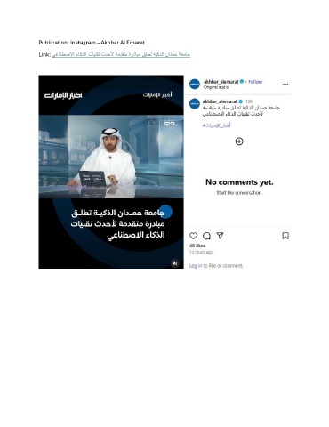 Publication: Instagram – Akhbar Al Emarat Link: يعانطصلاا ءاكذلا تاينقت ثدحلأ ةمدقتم ةردابم قلطت ةيكذلا نادمح ةعماج