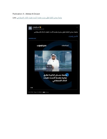 Publication: X – Akhbar Al Emarat Link: يعانطصلاا ءاكذلا تاينقت ثدحلأ ةمدقتم ةردابم قلطت ةيكذلا نادمح ةعماج