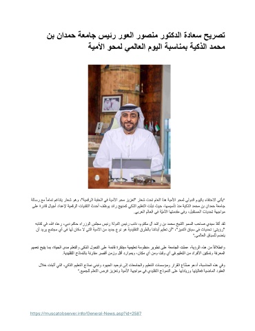 ةلا سر عم ًامامت مغانتي راعش وهو ،"ةيمقرلا ةبقحلا يف ةيملأا وحم زيزعت" راعش تحت ماعلا اذه ةيملأا وحمل يلودلا مويلاب ءافتحلاا يتأي "