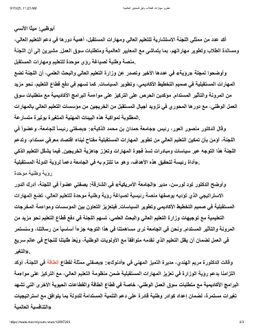لﺑﻘﺗﺳﻣﻟا تارﺎﮭﻣو مﯾﻠﻌﺗﻠﻟ ةدﺣوﻣ ىؤر ﺔﻏﺎﯾﺻﻟ ﺔﯾﻧطو ﺔﺻﻧﻣ.