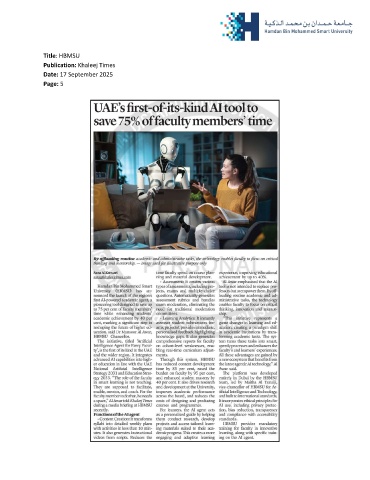 Title: HBMSU Publication: Khaleej Times Date: 17 September 2025 Page: 5