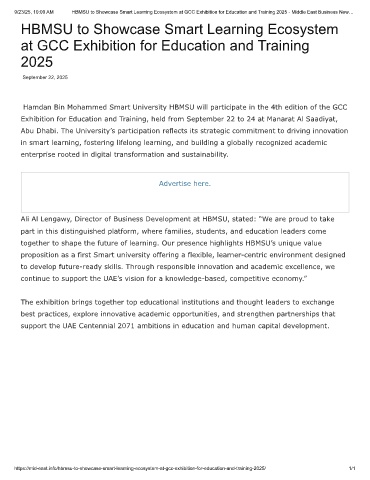 9/23/25, 10:00 AM HBMSU to Showcase Smart Learning Ecosystem at GCC Exhibition for Education and Training 2025 - Middle East Business New…