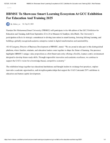 9/23/25, 10:03 AM HBMSU to Showcase Smart Learning Ecosystem at GCC Exhibition for Education and Training 2025 | Web Release