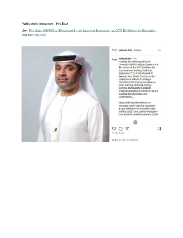 Publication: Instagram – Mid East Link: Mid-East: HBMSU to Showcase Smart Learning Ecosystem at GCC Exhibition for Education and Training 2025