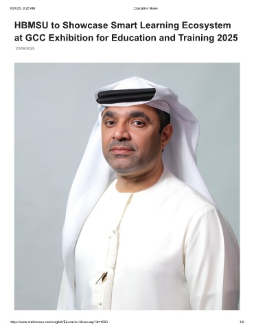 9/24/25, 9:26 AM Education News HBMSU to Showcase Smart Learning Ecosystem at GCC Exhibition for Education and Training 2025 23/09/2025 https://www.arabbnews.com/english/Education-News.asp?id=1063 1/2