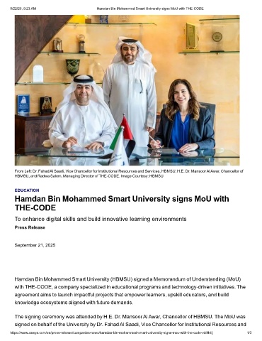 9/22/25, 9:23 AM Hamdan Bin Mohammed Smart University signs MoU with THE-CODE