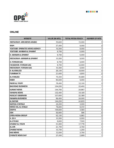 WEBSITE VALUE (IN AED) TOTAL MEDIA REACH NUMBER OF HITS