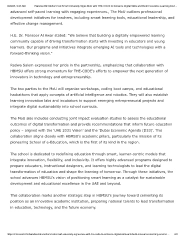 9/22/25, 9:23 AM Hamdan Bin Mohammed Smart University Signs MoU with THE-CODE to Enhance Digital Skills and Build Innovative Learning Envi…
