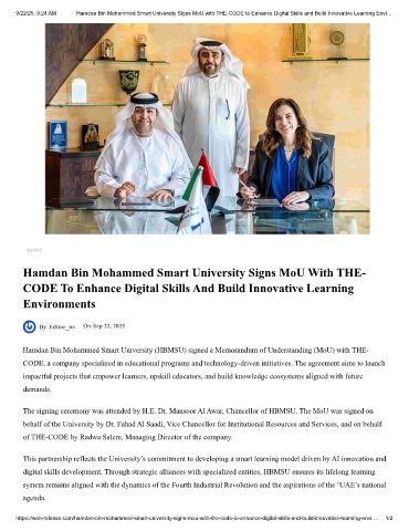 9/22/25, 9:24 AM  Hamdan Bin Mohammed Smart University Signs MoU with THE-CODE to Enhance Digital Skills and Build Innovative Learning Envi…