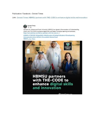 Publication: Facebook – Emirati Times Link: Emirati Times: HBMSU partners with THE-CODE to enhance digital skills and innovation