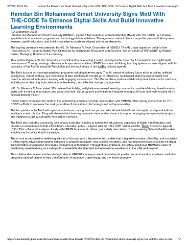 9/23/25, 10:07 AM  Hamdan Bin Mohammed Smart University Signs MoU With THE-CODE To Enhance Digital Skills And Build Innovative Learning E…