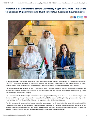 9/23/25, 10:07 AM  Hamdan Bin Mohammed Smart University Signs MoU with THE-CODE to Enhance Digital Skills and Build Innovative Learning En…