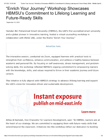 9/17/25, 10:09 AM “Enrich Your Journey” Workshop Showcases HBMSU’s Commitment to Lifelong Learning and Future-Ready Skills - Middle East B…
