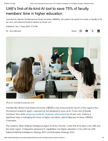 9/12/25, 9:43 AM UAE's first-of-its-kind AI tool to save 75% of faculty members' time in higher education | Khaleej Times