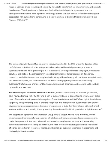 10/20/25, 1:52 PM Khalifa Fund Signs Three Strategic Partnerships to Boost Innovation, Capacity Building, and Digital Security at GITEX GLOBAL 2…