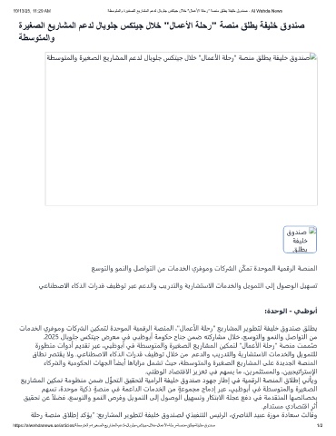 10/13/25, 11:29 AM ﺔطﺳوﺗﻣﻟاو ةرﯾﻐﺻﻟا ﻊﯾرﺎﺷﻣﻟا مﻋدﻟ لﺎﺑوﻠﺟ سﻛﺗﯾﺟ لﻼﺧ "لﺎﻣﻋﻷا ﺔﻠﺣر" ﺔﺻﻧﻣ ﻖﻠطﯾ ﺔﻔﯾﻠﺧ قودﻧﺻ - Al Wahda News