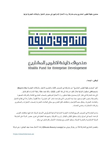 ايكرتب ةيراجتلا تلااكولاو زايتملاا ضرعم يف نييتاراملإا لامعلأا داور ةكراشم معدي عيراشملا ريوطتل ةفيلخ قودنص