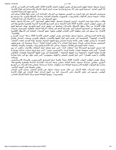 و ﻞﺴﻌﻠﻟ تاﺮﯿﺧ" ﺔﻛﺮﺷ 2025 ﺔﻳﺬﻏﻸﻟ ﻲﻟوﺪﻟا ﻲﺒظﻮﺑأ ضﺮﻌﻣ ﻲﻓ ﺔﻔﯿﻠﺧ قوﺪﻨﺻ ﺎﮫﻤﻋﺪﻳ ﻲﺘﻟا ﻊﻳرﺎﺸﻤﻟا ﺔﻤﺋﺎﻗ ﻢﻀﺗ
