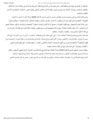 بﺎﺷﻋﻷاو لﺳﻌﻠﻟ تارﯾﺧ" ﺔﻛرﺷ 2025 ﺔﯾذﻏﻸﻟ ﻲﻟودﻟا ﻲﺑظوﺑأ ضرﻌﻣ ﻲﻓ ﺔﻔﯾﻠﺧ قودﻧﺻ ﺎﮭﻣﻋدﯾ ﻲﺗﻟا ﻊﯾرﺎﺷﻣﻟا ﺔﻣﺋﺎﻗ مﺿﺗو