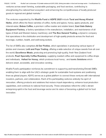 https://foodbusinessgulf.com/news/khalifa-fund-to-showcase-10-emirati-ventures-at-adife-2025-driving-innovation-in-food-and-beverage-sector/ 2/2