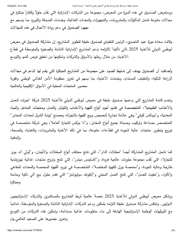 ﻞسﻌﻠﻟ تاريﺧ“ ﺔكرﺷ 2025 ﺔيذﻏﻸﻟ ﻲﻟودﻟا ﻲبظوﺑأ ضرﻌﻣ ﻲﻓ ﺔﻔيﻠﺧ قودنﺻ ﺎﻬمﻋدﯾ ﻲتﻟا ﻊيرﺎشمﻟا ﺔمﺋﺎﻗ مضﺗو