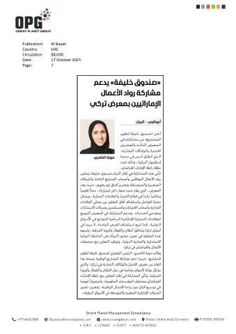 Publication: Al Bayan Country: UAE Circulation: 88,000 Date: 17 October 2025 Page: 7