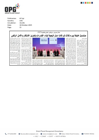 Publication: Al Fajr Country: UAE Circulation: 34,596 Date: 18 October 2025 Page: 15
