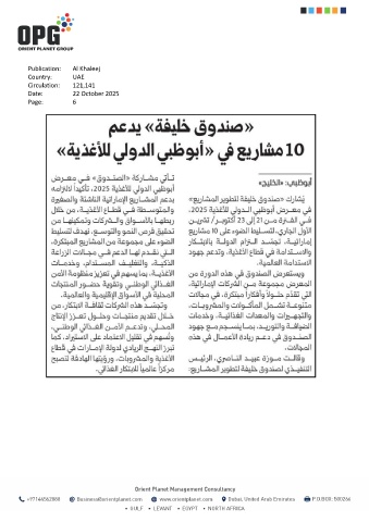 Publication: Al Khaleej Country: UAE Circulation: 121,141 Date: 22 October 2025 Page: 6