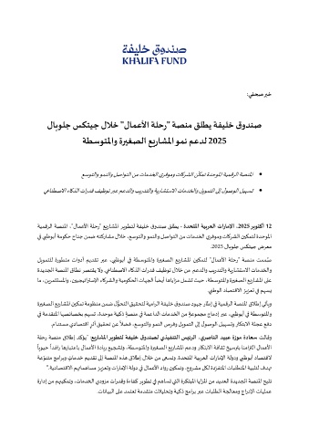 ﺔﻴﻤﻗﺮﻟا ﺔﺼﻨﳌا " ، لﺎﻤﻋﻷا ﺔﻠﺣ " ر ﻊيرﺎﺸﳌا ﺮ�ﻮﻄﺘﻟ ﺔﻔﻴﻠﺧ قوﺪﻨﺻ ﻖﻠﻄﻳ - ةﺪﺤﺘﳌا ﺔﻴ�ﺮﻌﻟا تارﺎﻣﻹا ، 2025 ﺮ�ﻮﺘﻛأ 12