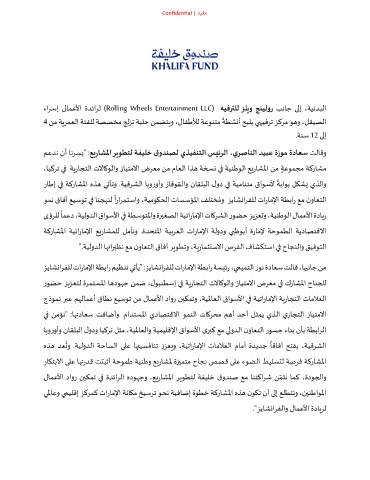 ءاﺮﺳإ لﺎﻤﻋﻷا ةﺪﺋاﺮﻟ ( Rolling Wheels Entertainment LLC ) ﮫﻴﻓ��ﻠﻟ ﺰﻠ�و ﺞﻨﻴﻟور ﺐﻧﺎﺟ ��إ ،ﺔﻴﻧﺪﺒﻟا