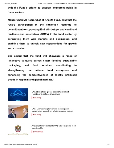 10/22/25, 1:11 PM Khalifa Fund supports 10 Emirati ventures at Abu Dhabi International Food Exhibition